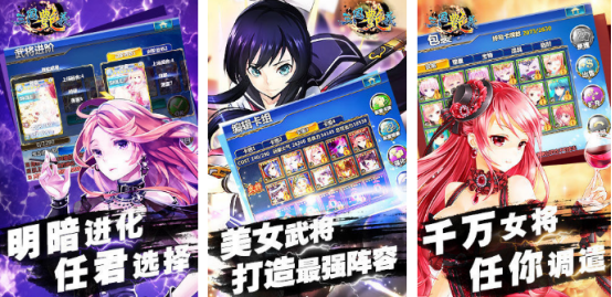 众多颜值超高的三国女将全部展现,而这些美女都以卡牌的形式所展现,大家可通过收集或者是强化等多种方式,让女将的整体品质到达高峰。还高度复刻经典的三国战役,比如在群雄逐鹿或者是官渡之战中,各种女将都可成为自己的超强得力助手,在天马行空的故事剧情中。大家要敢于强化自身的实力,挑战更多对手。