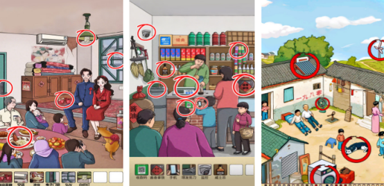 复古的画风,可能会让大家走进80 ,90年代的街头上,可看到复古的供销社或者是古老的房间等。而这些房间中却隐藏很多和年代不符合的物品,比如有空调或者是手机等等。大家在闯关时就需按照具体的要求,将所有不符合年代的物品全部找到。直接用手指点击即可,轻松找到并突破难关。