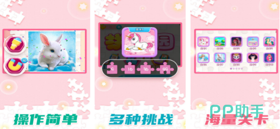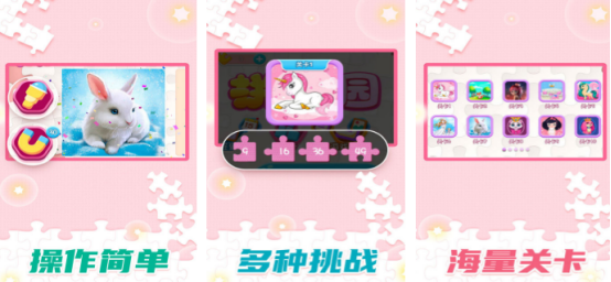 覆盖大量精美的图片类型,其中也有不同难度等级,任由大家选择,包括从9片再到49片等等。大家可结合自己的实际情况去挑战,也可从不同的图片主题当中,全面解锁,包括特别梦幻的公主角色,或者是经典的独角兽等等,每个关卡中所呈现出来的碎片都完全不同,用手指拖动即可完成拼图。