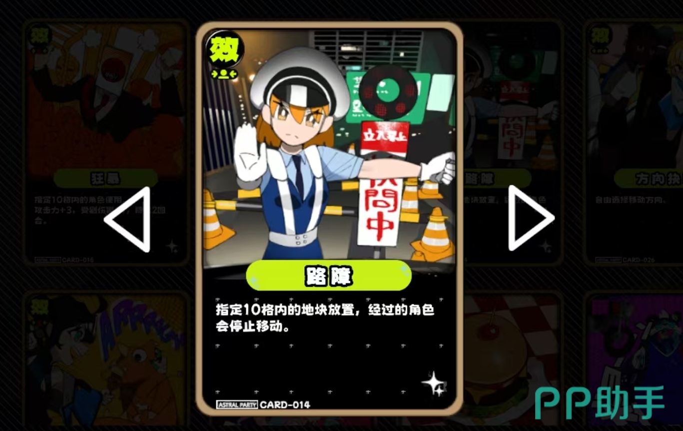 路障手牌允许玩家在己方回合内于任意空置格放置路障。一旦对手移动路径经过该格,无论剩余移动点数多少,均立即终止本回合所有移动行为;路障仅在被触发时消失,未触发则持续存在。该手牌无单局使用次数上限,只要玩家当回合手牌使用未达上限且持有该卡,即可重复部署。