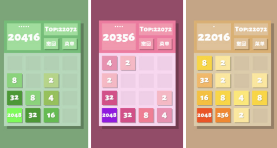 清新的视觉效果,毫无内购与广告,受到很多女性玩家的喜爱,经典2048的升级版本,加入撤回菜单等设计,通过合并数字,组合成为更大的数字,获得极高分数,超清爽的特色界面,享受无限惊喜与乐趣,各主题应有尽有,有清新的绿色,还有梦幻的紫色。