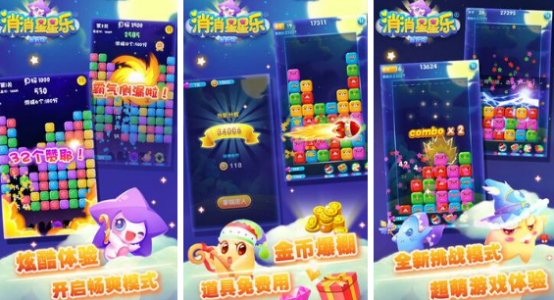 清新靓丽画风,经典消星星的全新升级版本,画面精美,毫无时间限制,每个阶段都有适合的目标,完成消除之后,金币爆棚,各类道具都能免费使用,全新挑战模,全新萌系模式,享受多样挑战。想获得极高分数,需要耗费脑细胞,这是开动脑筋的不二之选。