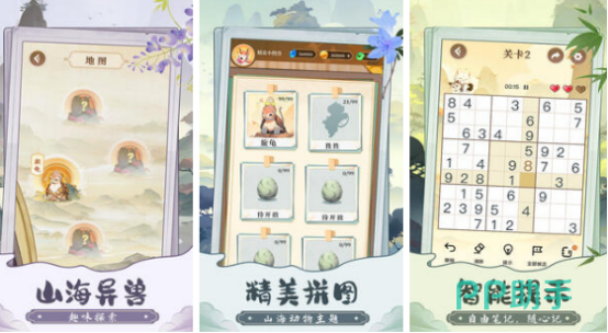 上班摸鱼的优质之选,每场对局仅需几分钟就能通过数独关卡之后,可收集山海经卡片,完成可爱拼图。需根据已知的盘面,应用观察力和逻辑思维,填缺空缺的数字,提供500多个关卡,依旧在不断更新,超丰富海量题库,让数独不再枯燥无聊,将传统知识与现代创新设计相结合带来优越体验。