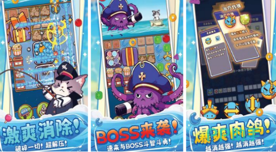 三消肉鸽相结合,与可爱的小猫共同摸鱼,滑动手指就能拼凑出三消,完成消除获得超强道具和战力最终攻击boss。爽快的肉鸽玩法。并伴随着关卡不断前进,可能会遇到很多巨大的海怪,需要有极强的战斗力,与勇敢的小猫咪共同并肩作战,最终来一场酣畅淋漓的战斗。