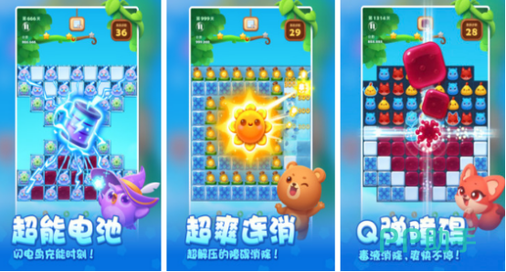 开心消除中名列前茅的热门作品,操作简单易上手,丰富特色,吸引大量玩家,交换屏幕关卡中相邻动物的头像,将三个相同动物连接成一条线就能完成消除,如果同时消除更多的动物,那么便会发出相应的特效,也会产生爆炸及魔力鸟,组合使用,完成大规模爆炸,清除各类障碍,成功通关。