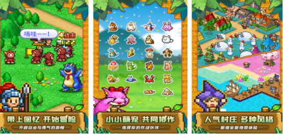 在冒险村中建造旅馆与防具店,打造你的基础设施,开罗类作品采用超经典又很形象的像素风格,通过探索战斗获得超多武器,为冒险者带来超级坚实的后盾,招募并培养多位冒险者,升级转职,或者添加装备来强化团队,其勋章与道具它都能显著增加相应的特色属性,加入多种玩法与系统,有宠物和称号,可捕捉怪物,增强策略性。
