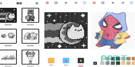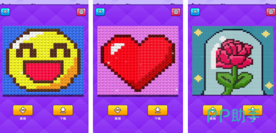 像素风格所渲染,虽然给大家带来复古的体验感,但是其中的完美作品却应有尽有,只要根据图片中的各种数字填上对应的颜色之后,就可看到活灵活现的图片类型。其中有不同的模板组合而成,起初模板只是一片空白,通过正确填色的方式就可焕然一新,比如有小汽车或者是小动物等等。下方还会呈现出三个选项,包括色系以及自定义等。