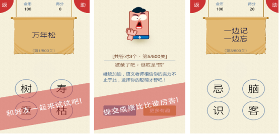 5000多个不同的关卡内容全部集结,每个关卡中所涵盖的文化知识都完全不同,就比如在方块中将会看到笔画或者是偏旁等等,通过灵活多变的方式,将这些笔画以及偏旁巧妙地组合在一起,就能猜出其中的字谜。每个关卡中其实都有具体的要求,也给大家带来新颖的挑战玩法,成功回答后也可获得相应的金币奖励。