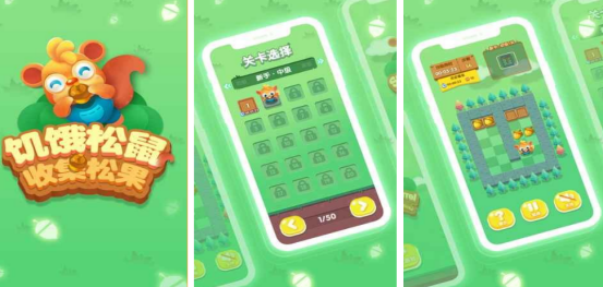 与超级饥饿的松鼠共同在森林当中采集松果,看似很多诱人的果实掉落在草地上,但想要拾捡并没有那么简单容易,有很多障碍也会遭遇到其他动物的袭击,因此要巧妙利用有限空间,并合理安排出招顺序,帮助饥肠辘辘的小松鼠收获到美味的食物,一不小心位置偏差就会导致被石头压住,因此要设定相应计划,还要应用物理知。