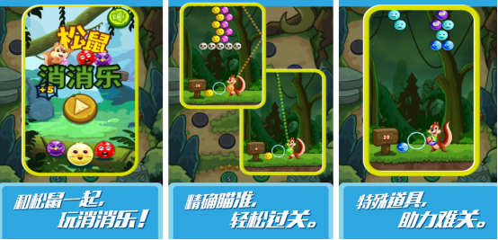 与松鼠一起畅玩消消乐,采用经典物理抛物线模式,精准瞄准,轻松过关,有很多特殊道具助力你成功通过难关,将消除与抛物线设定相结合移动指尖享受畅快的射击模式,松鼠控制的球球颜色非常梦幻,只要弹射时触碰到相应颜色球球,达到三个以上就能快速消除,与普通的消除作品相比并没有那么无聊,而且也能消除烦恼。