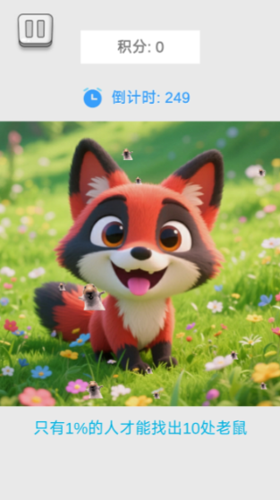 这款游戏制造了大量的精美入微的图片,而你要做的就是找出图片里面所有的老鼠,这非常考验你的眼力。游戏的配乐诙谐搞怪,你听了心情定然由阴转晴。游戏关卡多,你可以多多挑战眼力极限。游戏关卡有倒计时,随着一秒秒时间流逝,更能让你急中生智,开发出你的眼力潜能。