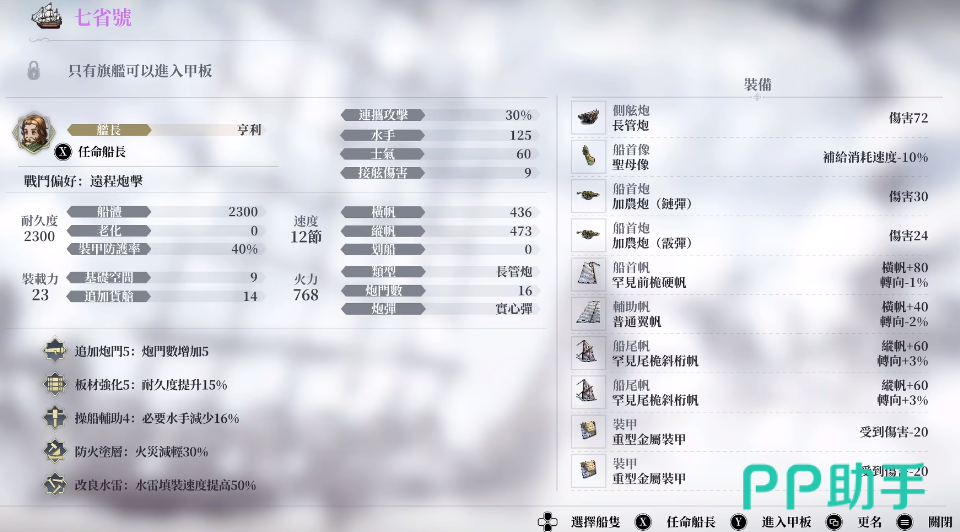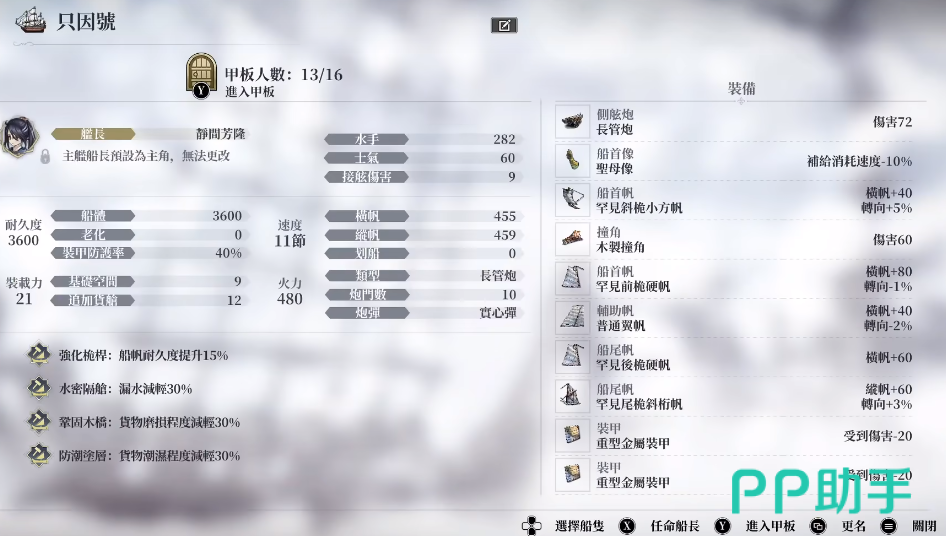 只因号以高容错性见长:除拥有同级领先的船体耐久数值外,货舱容量亦显著优于常规三桅商船。针对潮湿气候下的货物保存难题,游戏内支持通过“尾杆强化”与“防潮涂层”两类专属改造方案进一步提升环境适应力——前者增强结构稳定性,后者直接降低货品受潮概率,双管齐下确保远洋贸易链路的可靠性。