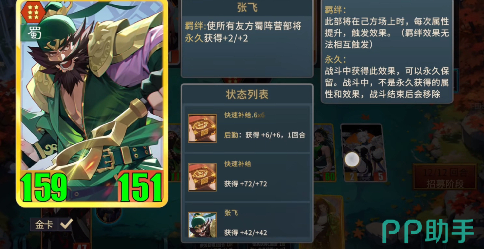 中后期运营重心应转向高星蜀国将领的获取与替换。在商店刷新过程中,需同步关注卡牌星级、技能类型及属性倾向,为后续羁绊升级预留空间。值得注意的是,蜀国羁绊效果并非孤立存在,而是与后勤体系深度联动。例如,前期可配置“军备强化”“粮草充足”类后勤卡牌,兼顾生存韧性与输出稳定性;进入后期对局后,则需根据敌方阵容特性动态调整后勤组合,选择具备克制能力的功能性卡牌,形成战术反制。