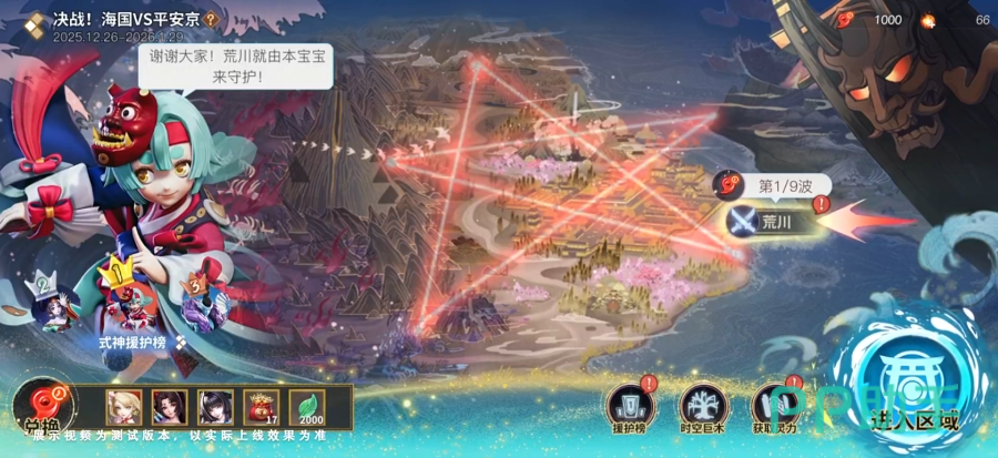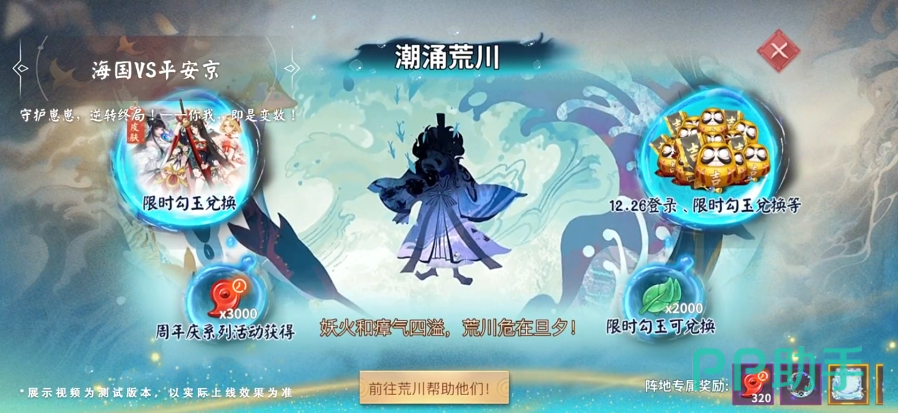 背景设定中,“潮涌荒川”危机全面爆发——妖火蔓延、瘴气弥漫,整片荒川区域正面临持续侵蚀。玩家需以守护者身份加入战局,通过完成指定区域的协同作战任务,逐步稳定局势。活动期间,玩家可通过通关进度限时兑换勾玉,资源获取路径清晰高效。