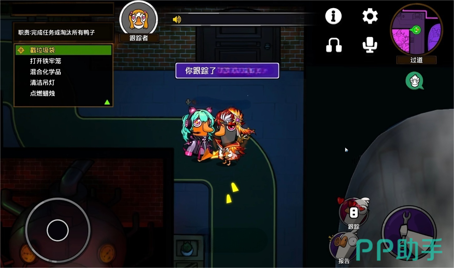 在《鹅鸭杀》手游中,跟踪者是一个定位独特、机制鲜明的阵营角色。作为大鹅阵营的一员,该角色不具备直接击杀能力,但拥有专属技能——可对一名玩家施加“追踪标记”,并在地图上持续显示其移动方向的箭头指引。这一机制使其成为信息收集与战术预判的关键角色,尤其在需要识别伪装者或锁定可疑目标时发挥重要作用。