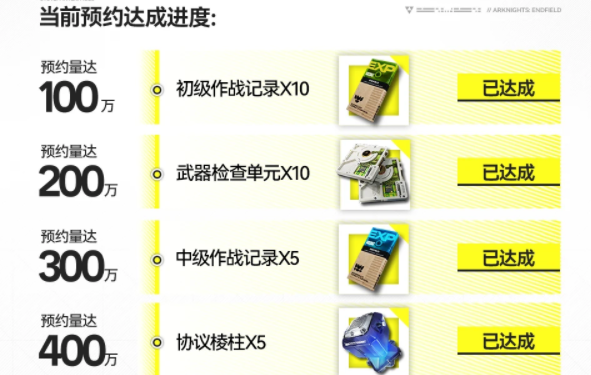 明日方舟终末地设置了一个二次元世界,大量科技元素的融入,也会让玩家感觉自己穿越到了未来场景,游戏官方已经公开,会在2026年的1月22开启全球公测,在玩家能正式体验游戏之前,都可以先通过预约获得对应的里程碑奖励,玩家可以直接通过上面的链接或者去豌豆荚预约下载,针对预约活动,游戏推出了里程碑奖励,只要达到对应的预约数量,玩家在正式体验之后,就能得到对应的物品,预约达到100万,可以获得10个初级作战记录,预约达到200万之后能获得10个武器检查单元。