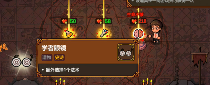 随机掉落的物品,玩家可以在点击画面后与环境发生一个互动效果拾取以后,合理搭配将会实现新的法术形成,在法术的类型上也分为了法术飞弹,法术增强,召唤类的法术和被动类的法术,仅仅是这4种类型的法术,便可以帮助我们对抗力量强大的敌人了。迷你的角色设计,配合法术的使用,将会让小小的英雄释放出极大的战斗力量。