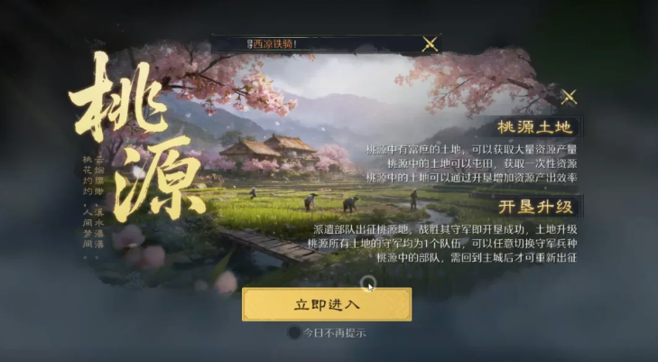 而解锁了桃源地之后,大家就可以看到自己的内城值,内城值基本是没有什么强度可言的,在这里都是需要大家完成开荒才可以拿到更多的资源,而且在角色有11级之后,大家就可以在内城里面开到5级了,当然这里出现的一些守军也是大家要进行攻击的敌人,守军出现的强度也是达到红色品质的,所以在此大家使用自己阵容的话,建议他们的武将使用最多都要达到10级,要不然根本没有办法战胜,后期重复这样进行操作的话,来补充五级地,保证两个队伍能够把级别练起来就可以啦。