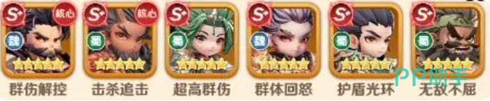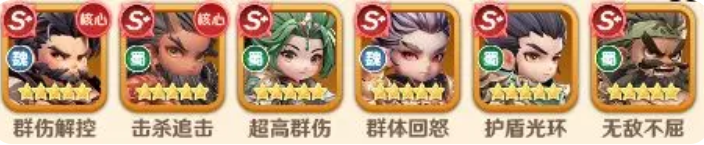 最后一个阵容大家可以用的是蜀国的阵容效果,在其中用的是诸葛亮、张飞、黄月英、关羽、赵云、刘备,那么在这里进行这个阵容组成的话,大家在其中可以达到的追击机制是非常高的,而且秒杀能力也是可以做到收割的,在其中张飞可以作为一个前排的抗伤阵容效果,能够带来的武力盾,虽然在这里只有他一个人提供这样的防护效果,但是可以配合队伍当中的控制角色,比如说黄月英,黄月英的群攻能力就可以给到对面足够的沉默,在减少对面怒气的时候,我方就可以利用这样的一个优势快速攻击敌人。