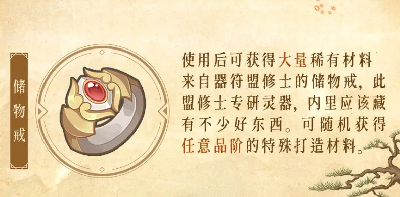 当然了如果拿到这里墨门筒的话,后期还可以根据其他的材料进行同步制作,比如说须弥盒,须弥盒也是其中一个稀有材料,是目前在须弥山这个地图当中可以得到的特产,而且很多的休闲玩家都会用这个东西来做一个储藏格,所以在后期大家在需要打扫背包的时,这个须弥盒就会有一定的用处,而且实用性相对来说也是非常高的,另外则是类型的储物戒,储物戒在当前的效果当中也是一类稀有材料,而且是在使用了这个道具之后,大家可以获取大量的空白格子可以进行储物。