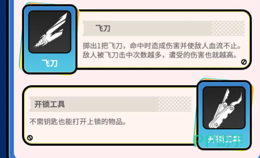 追求极致伤害,不如就选择高速飞行的三叉钳,可以直接刺穿敌人,造成可观的伤害。飞刀不仅可以命中,叠加的次数越多,所造成的伤害也就越高,对付血厚的精英怪也是很好用的。另外还有堪称探索神器的开锁道具,让你不需要钥匙,照样也可以打开上锁的宝箱以及房门,轻松的获取隐藏的奖励。高级战术装置的核心优势就在于拥有较高的性价比,前期的宝箱,还有商店里面全部都能找到。在战斗的过程中,合理的搭配使用,就能节省通关的时间,在结算时就能拿到丰厚的奖励。