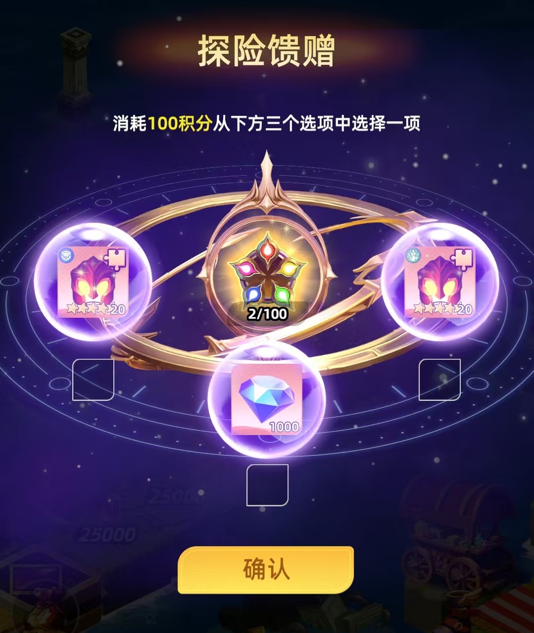 探险等级提升后,地图中所有格点奖励品质同步升级,同时逐步开放更高阶区域与特殊事件节点。除主线积分体系外,另设独立星盘点数系统:每次掷骰稳定获得2点星盘点数,累计达100点即可在遗迹星盘中兑换指定高价值道具,包括五星级英雄碎片、钻石等限定资源。该系统不依赖操作干预,属纯被动积累型收益,适合长期挂机式运营。
