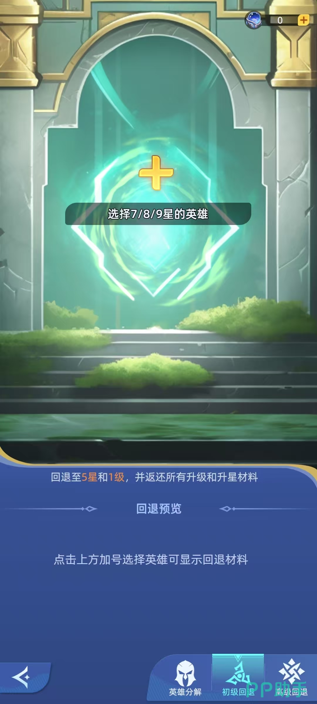 针对高星英雄的调整需求,祭坛另设两级回退机制:初级回退面向7~9星英雄,可将其重置为五星1级,并全额返还已消耗的升星材料与进阶材料,所需道具为逆转灵珠,可通过每日登录礼包等常规活动稳定获取;高级回退则专用于10星及以上英雄,可直接回退至九星状态,同步返还全部投入资源,所需道具为逆转魔晶,主要产出渠道为每周限购礼包与巅峰商店。