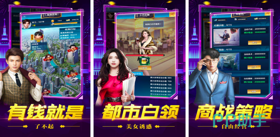 为众多有霸总梦打造的商业恋爱策略类手游,一手搞事业,一手谈感情,两手开工两不误,直接走向人生巅峰。开局草根出身凭借着一场场商战模拟,直接赚到手捧金币,利用商业头脑让公司茁壮发展,在员工系统中可以培养自己的专属精英,上百辆豪车云集于此,打造你的奢华豪车派对,在线开启追求送礼约会美女秘书。