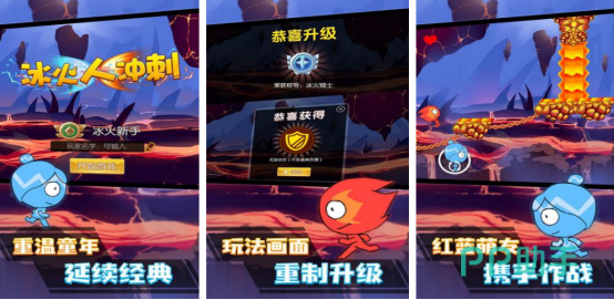 有冰火两种不同的元素人物角色组合而成,复古的画风,也重现儿时的回忆,在冲刺的过程中,通过共同配合的方式才能突破难关,比如走过岩浆或者是走过沙漠等等。红蓝的盟友必须携手作战,屏幕上都有相应的控制按键,在闯关时如果遇到各种陷阱或者是各种障碍物时,都需共同携手才能突破难关。