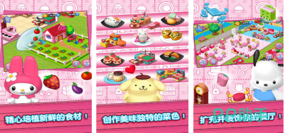 想实现自己的餐厅梦想,此游戏就是非常不错的选择,也适合更多小孩子来轻松畅玩,走进特别逼真的餐厅中。随意使用各种餐具,比如锅碗瓢盆等等,将各种新鲜的食材组合在一起,就可为顾客制作出口感独特的美食,让顾客大快朵颐的享受美食。在经营餐厅时,也有很多以Hello Kitty主题为主的装饰物或者是墙纸等等,精心设计自己的美食小镇。