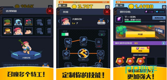 采用2d的风格所展现,每个关卡中都有具体的任务,比如在屏幕最下方就会看到具体的任务要求,需在到处都是僵尸的世界中,用各种炫酷的武器力量武装自己,和僵尸展开热血战斗,还有丰富的特工类型等大家来选择,每种特工都有具体的介绍和实力展现等等。完成其中的任务之后,就可快速触发下一个任务。