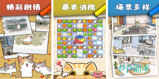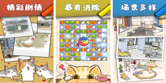 各种形形色色的猫咪,将要开启自己的冒险旅程,被困在一座荒岛当中。而在这里面对各种高难度的挑战时,就需要收集各种线索,才能完善并精心设计自己个性化的岛屿环境,其中有丰富的猫咪角色等大家来操控。比如可通过捕猎或者是垂钓的方式建设出各种繁华的建筑物,还以经典的三消玩法为核心,合理滑动,就能寻找到三个或多个相同的物品,从而快速消除并寻找到隐藏的石像。