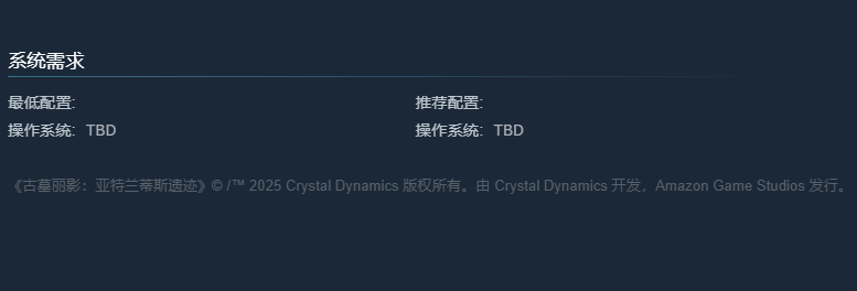 古墓丽影亚特兰蒂斯遗迹配置要求目前还是未知数,但是官方已经决定在2026年上线,商店页面也已经搭建好了,时刻为玩家推送相关研发的信息。在优化工作的尾段,也会定下具体的硬件需求,到时候后本站也同步更新,各位按需升级,就能在发售时正常玩到。
