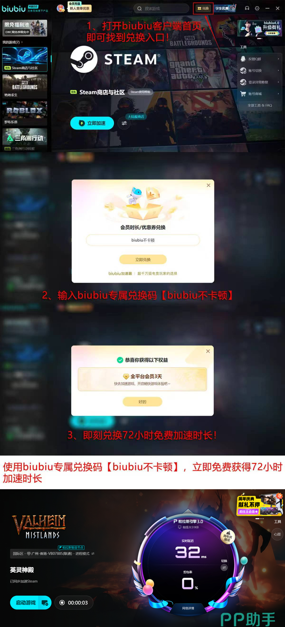当通过biubiu去玩该游戏,进入游戏后没有延迟卡顿,不管是组队开荒还是探索地图,操作都跟手;联机时也不会出现丢包、掉线这些了。要是觉得小编在吹,自己试试就知道究竟有多厉害了。毕竟目前新人首次注册,直接就能领到24小时免费加速时长,相当于零成本体验高速网络的快乐。还想继续试试的话输入专属兑换码【biubiu不卡顿】,还能额外兑换72小时免费加速,算下来一共能免费享受96小时的畅快加速体验呢!