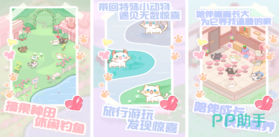 想要远离城市喧嚣的小织,回到了奶奶留下的猫咪农场,在这里不仅可以摘野生蔬果、种田、钓鱼,还需要照顾奶奶留下的6只小猫咪,从布偶猫到牛奶猫,各种可爱毛色的小喵们陪着你一起经营农场,每只小猫都有软乎乎的肚子,很粘人的喵喵声,简直是撸猫爱好者的梦中情猫。还可以种植各类瓜果蔬菜,为这些猫咪制作营养的动物大餐。专属的农场领养区域,让你解锁农更多农场小动物,不断扩大自己的种植园区。
