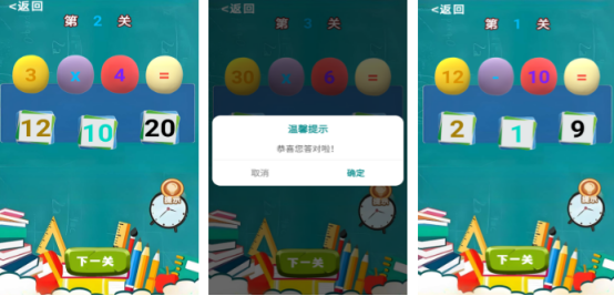 各种算式为主要核心,适合很多孩子或者是成年人随时畅玩,在体验游戏的同时即可充满浑身。教育又可提高自己的口算能力,覆盖了加减乘除的不同口算。比如关卡开始之后,会随机给出一个题目,就比如3×4=几,而下方又会呈现出三个选项,其中有12或者是10以及20,用极强的口算能力,快速寻找到对的答案,即可完成下一个关卡内容。