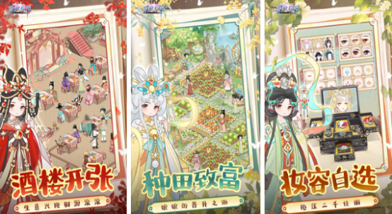 支持多账号互通,融合中国传统绘画及美术效果,呈现出视觉上的恢弘典雅,古代世界。跌宕起伏的权谋故事与多套唐服和配饰,享受别致装饰,获得超华丽效果的同时也能养育皇子,解锁家居,为了在古代当中获得更高的经济效益,经营酒楼与客栈,或完成农场种植等一系列事业。游戏不定期持续更新,给玩家带来极高的新鲜感,确保玩法有新鲜度。