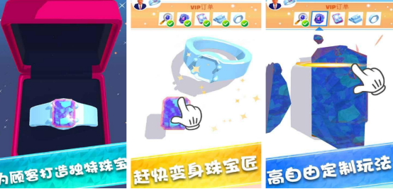 经营你的珠宝店,快速成为珠宝匠,每天都会接到很多vip订单,根据订单的需求和所有顾客的个人喜好来制作出流光溢彩的珠宝。好看又好玩的游戏类型,整体画风超级简单,化身成为珠宝店店主,制作戒指、钻石,纯手工打造,每次制作完成都能获得无限成就感,成为珠宝制造者,根据顾客的实际喜好来完成定制,享受一本万利的生意。