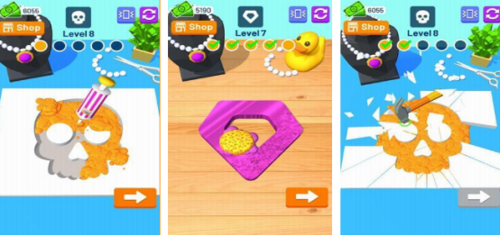 较多珠宝不同类型等你来完成,利用各工具打造出不同的效果和相应颜色,简单,内容自由,工具超丰富,有钳子、锤子、打磨器等,在海滩上收集珍珠,通过挖矿的方式寻找到相应的钻石,还可利用彩泥来进行定制,不同样式,最终的设计结果是有所差异的,给玩家带来无限惊喜与激情。