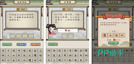 游戏将历史故事,还有民俗常识作为核心,谜题基本上和传统文化都有关系,每一个关卡都有120秒的答题时限。界面主要是以红色作为主色调,会渲染出喜庆热闹的氛围,题目的提示也会比较清晰,会明确的告知谜底所属的类别,帮助玩家轻松的锁定思考的方向。输入答案的操作简单直接,没有复杂的步骤,很适合快节奏解谜的玩家。