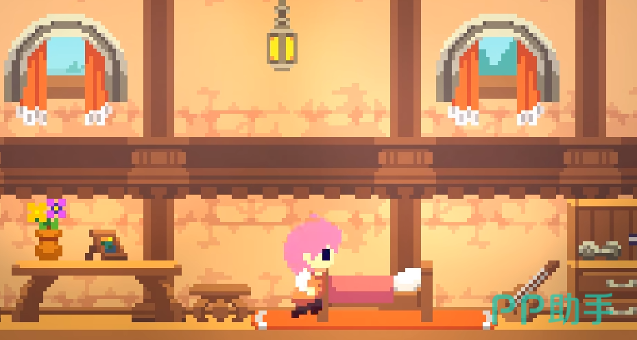 游戏开场为一段可跳过的剧情动画。跳过或观看完毕后,主角将在卧室中苏醒,系统随即引导完成基础跳跃动作。房间内可自由调查,收集角色背景信息;随后出门与镇上儿童对话,再前往阁楼——此处隐藏一个宝箱,需先将箱子拖至墙角,借势跃上顶部方可开启,内含多枚金币。