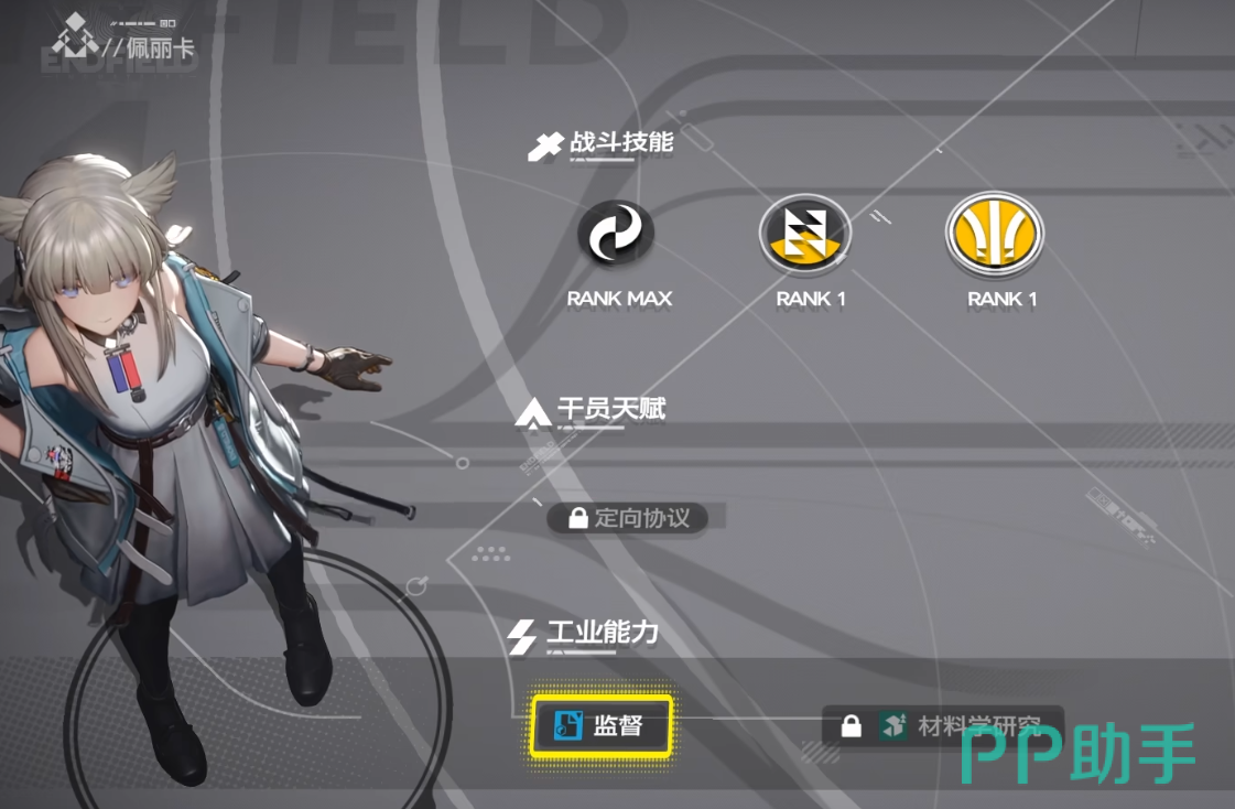 佩丽卡是游戏中首位登场的黎博利干员,亦为终末地工业体系的关键管理者,承担官方对外沟通职能。在主线叙事中,她处于多条剧情线交汇的核心位置。战斗层面,其普攻共四段,伤害类型为电磁,处决成功时可额外触发高额电磁伤害并恢复技力;战技为单体指向型电磁能量投射,作用范围有限但附带电磁附着效果;连携技需主控角色施加重击后激活,释放积蓄能量,造成范围电磁伤害并赋予目标导电状态,形成后续连锁反应基础。