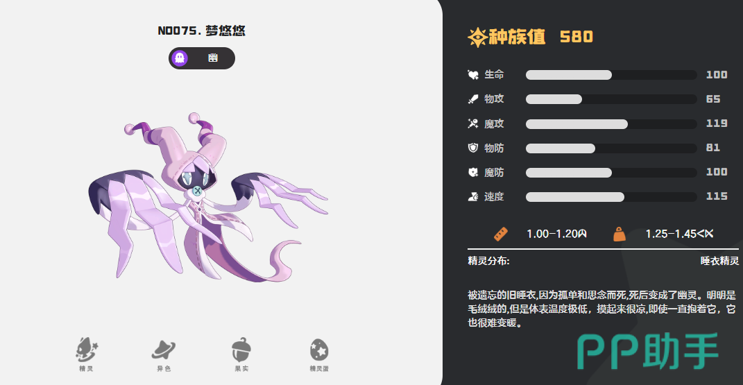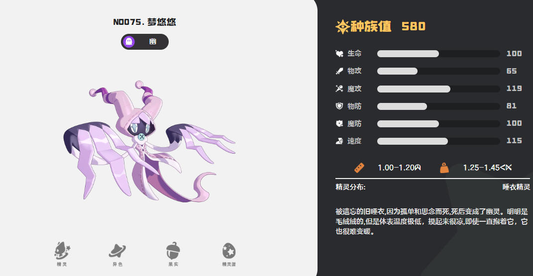 第二位成员选用梦悠悠(穿旧睡衣形态),幽灵系单属性精灵。入场即触发3点能量削减效果,与花影羚羊形成双重能耗压制。技能配置侧重控场与反制:「勾魂」可直接窃取敌方能量;「防御」提供大额减伤,稳固承伤能力;「幽灵爆发」作为主力魔法输出手段;「摇篮曲」兼具群体能耗提升与概率眩晕效果,在防御状态下触发眩晕可打断关键技能释放节奏。