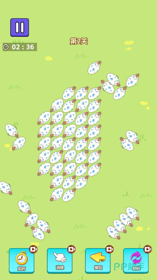 本作为物理驱动型策略引导游戏。鸭子移动方向严格由其头部朝向决定,无自动转向逻辑。玩家通过点击或划线方式设置驱赶路径,需同步观察多只鸭子的朝向变化趋势,规划最优驱离路线。纯色绿色背景搭配高对比度白色鸭身模型,确保位置识别零误差,核心挑战在于单位时间内完成全部目标鸭只的定向位移任务。