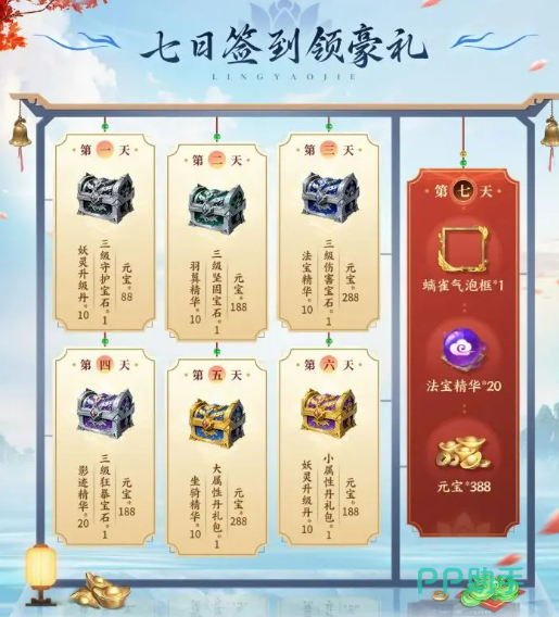 七日连续签到活动同步开放。每日登录即可领取对应资源礼包,包含灵石、修为丹、精炼符等高频消耗品。累计至第七日可解锁限定气泡框“螭雀”,具备唯一收藏属性。该活动无任何操作门槛,仅需每日进入游戏点击签到按钮即可完成,适合各类时间安排的玩家参与。