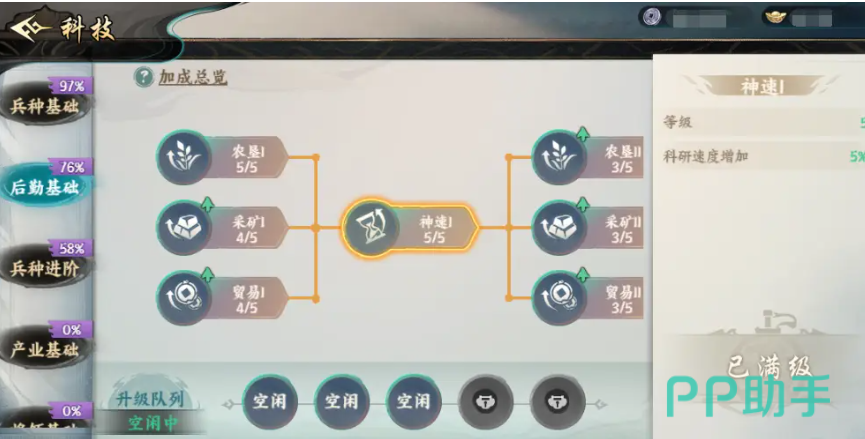 主城等级是全局发展的核心锚点,其上限直接决定太学院、兵营、点将台等关键建筑的可升级上限。其中,太学院为科技研发中枢,优先点亮“屯田令”可系统性提升所有资源建筑的产量,“八阵图”则显著增强全队控制覆盖率与持续压制能力——这两项科技对资源积累与PVE/PVP稳定性均有不可替代的价值,切勿闲置。所有科技升级均需消耗固定资源与时间,建议按“资源产出→战斗增益→专项强化”顺序分阶段投入,避免过早分散资源。