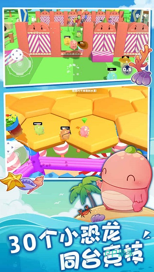 本作融合跑酷节奏与多人竞技机制,采用竖屏闯关形式,操作响应迅速,对抗张力十足。角色以拟人化恐龙为原型,造型萌趣辨识度高,视觉亲和力强。支持自由组队、实时匹配及自建房间,可快速发起小型趣味赛事。无论是同事协作闯关,还是好友间限时竞速,均能显著活跃现场气氛,缩短人际心理距离,加速团队默契养成。