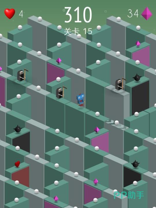 游戏构建于精确建模的三维欧氏空间中,路径宽度严格限定为单体通行尺度,收集目标与障碍均按标准立体几何体(如圆柱、四棱台、截角八面体)参数化生成。角色行为逻辑差异化明显:机器人具备磁吸吸附特性,绵羊则拥有弹性滞空机制,玩家需依据几何体投影面积与重心分布预判跳跃落点,失衡即坠入无限延伸的负空间区域。