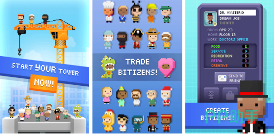 本作以像素方块美术风格构建核心视觉体系,以垂直建造为核心玩法。初始阶段仅能搭建基础楼层,随后逐步解锁商场、便利店、影院等多种功能空间。每一层均设有独立目标,例如达成指定日营业额、吸引特定数量顾客或完成设备部署任务。玩家可自主操控起重机、升降梯等大型基建载具,并通过模块化DIY设计赋予建筑个性化外观与内部动线逻辑。