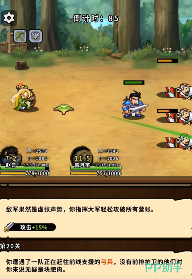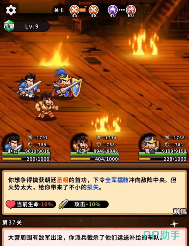 游戏采用关卡推进式结构,单局时长控制在3至5分钟之间,全程无需手动操控武将释放技能或走位,所有战斗均由系统自动演算完成。玩家的核心操作集中在战前配置:包括武将升阶、装备镶嵌、属性加点及阵容搭配。随着主线进程推进,角色等级、技能等级与基础属性同步提升,形成稳定成长曲线。